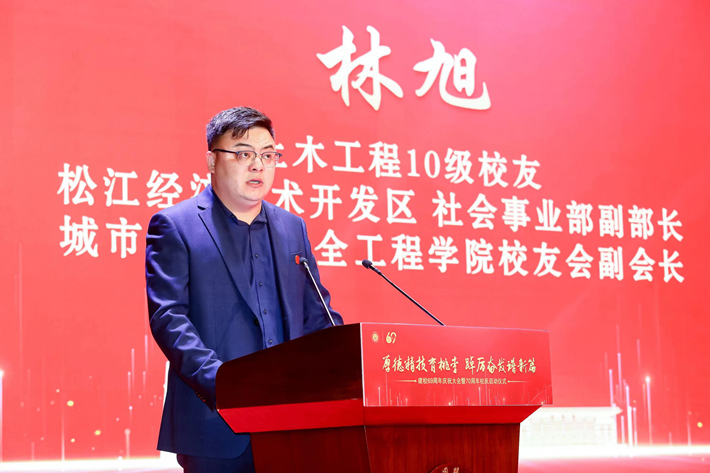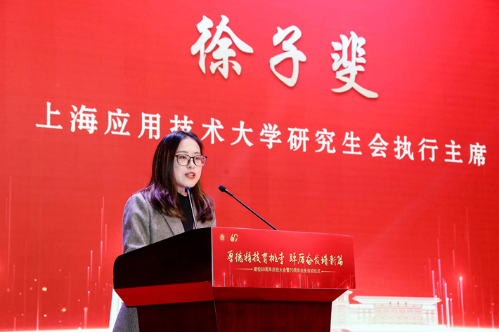松江经济技术开发区社会事业部副部长、2006级土木工程专业校友林旭,中科院光机所博士生、研究生会主席,2019级机械设计专业校友陈跃,生态学院2021级研究生徐子斐在大会上发言,他们对学校和老师的辛勤培育表示由衷的感谢,为学校的快速发展和丰硕的办学成果倍感骄傲,希望更多的上应学子树大国情怀,迈坚实脚步,努力在建设成为具有国际影响力的高水平应用创新型大学之路上,踔厉奋发、挺膺担当。