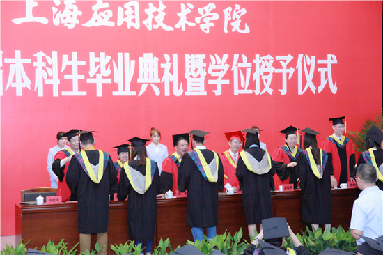 随后,副校长叶银忠宣布了授予学士学位的学生名单。在欢快的音乐声中,学士学位授予仪式隆重进行,校领导向毕业生们一一授予学士学位证书,并为他们拨穗。