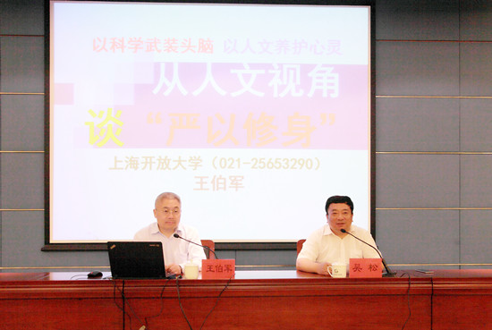 根据《上海应用技术学院关于在处级以上领导干部中开展“三严三实”专题教育的实施方案》,为进一步推进我校“三严三实”专题教育,6月11日下午,我校举办“三严三实”专题教育专题报告,邀请上海开放大学副校长王伯军作了主题为“从人文视角谈‘严以修身’”的专题报告。报告由校党委书记吴松同志主持,校领导宋敏娟、张艳萍、陈东辉、叶银忠、张锁怀出席报告会。全体中层干部、处级后备干部参加了报告会。