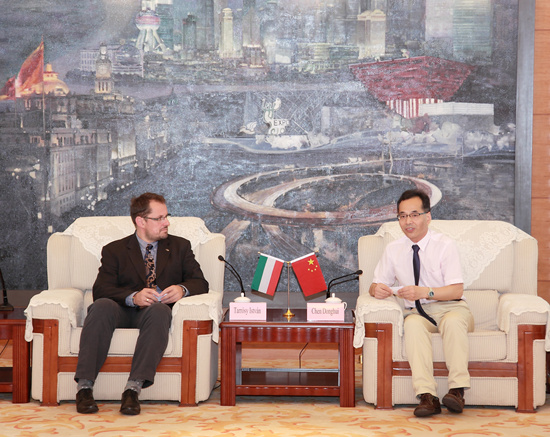 6月25日上午, 匈牙利佩奇大学外交事务委员会主任Tarrósy István 博士,工程与信息学院副院长Medvegy Gabriella博士和经济学院副院长Szucs Krisztián一行访问我校。副校长陈东辉在奉贤校区行政楼贵宾厅会见了来访的客人。国际交流处、城市建设与安全工程学院、经济管理学院相关负责人出席会谈。