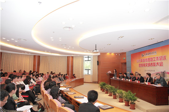 5月6日,学校组织召开2015年宣传思想工作会议暨精神文明表彰大会。校领导吴松、刘宇陆、宋敏娟、张艳萍、叶银忠、张锁怀出席大会。刘宇陆主持会议。全体中层正职干部,各党总支(委)、直属党支部宣传委员,获奖集体及个人代表、师生代表近150人参加会议。