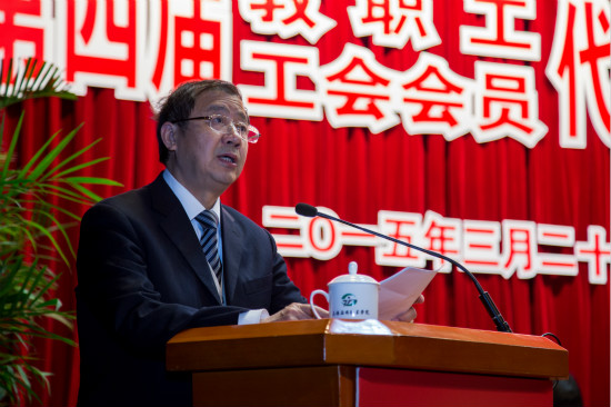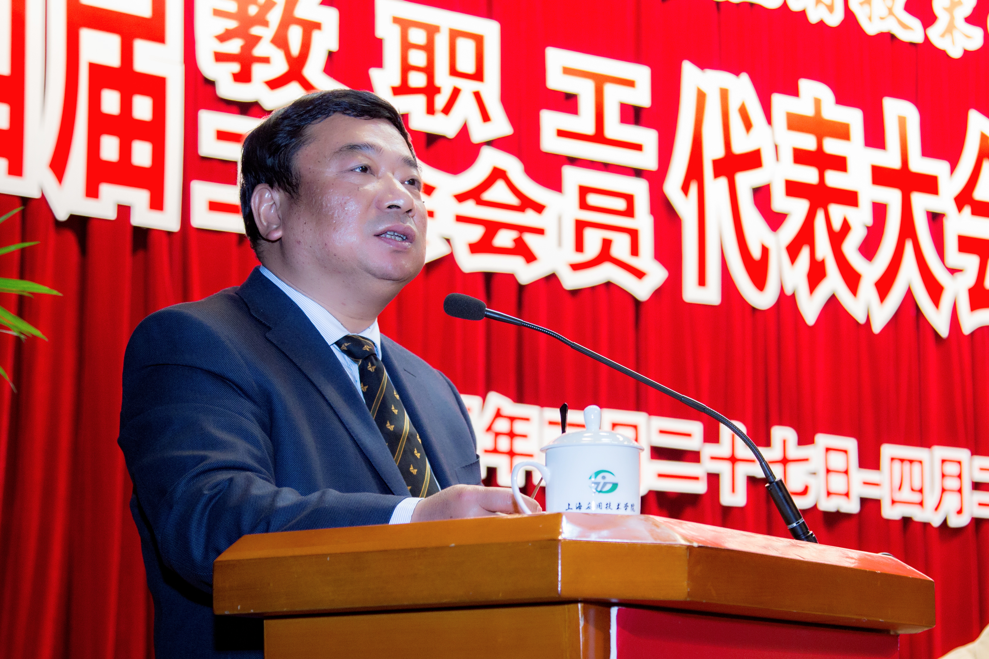 吴松在大会上作重要讲话。他指出,本次“双代会”是一次团结、民主、务实的大会,各代表团精心组织、各位代表积极参与,聚焦中心,紧扣重点,对提交大会的10个文件进行了热烈的讨论,对学校今后的发展提出了不少宝贵的意见和建议。他强调,要清醒地认识学校当前面临许多亟待破解的难题,在内涵建设的道路上学校承担着更加艰巨繁重的任务和使命,唯有敢于担当,脚踏实地,同心同德,才能一步一个脚印地把学校的建设提升到新的层次。吴松提出要求:一要扎实推进内涵发展,把“高水平应用技术大学”的发展任务体现到各项发展规划上去,细化到各个工作环节中去,落实到实实在在的推进举措之中;二要以大学章程制定为契机推进依法治校,主动构建适应学校发展目标、激发建设活力的制度体系,提高依法办事的能力和水平,把依法治校工作贯彻落实到各个具体领域和环节;三要抓住深入推进高校综合改革的契机激发办学活力,要按上级的部署和要求,强化顶层设计,坚持目标导向和问题导向,统筹推进综合改革。
