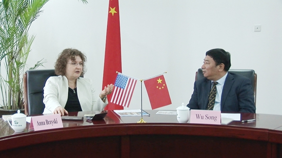 4月24日,上海大学美国研究中心美方主任、美国肯塔基大学艺术学院副院长Anna Brzyski女士来访我校。校党委书记吴松热情会见了来访的客人。国际交流处、人文学院、艺术学院相关负责人及教授出席了会谈。