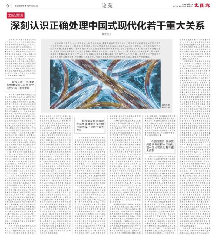 4月23日,《文汇报》刊登了我校党委书记郭庆松署名文章《深刻认识正确处理中国式现代化若干重大关系》。文章从理论、历史、实践三个维度深刻阐释认识处理中国式现代化若干重大关系。全文如下。