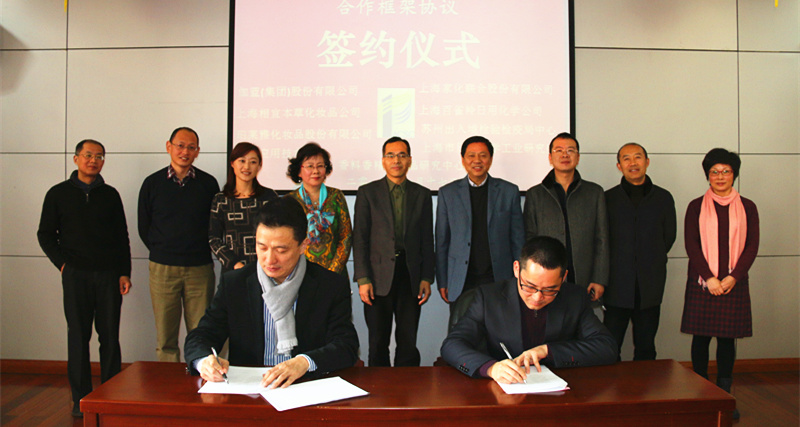 1月17日上午,上海高校知识服务平台香料香精及化妆品研究中心安全功效评价技术协作委员会合作框架协议签约仪式在我校徐汇校区图书馆117室举行。副校长、香研中心管委会主任陈东辉出席会议并致辞,上海日用化学工业协会秘书长金坚以及上海家化联合股份有限公司、伽蓝(集团)股份有限公司、上海相宜本草化妆品有限公司、珀莱雅化妆品股份有限公司、上海百雀羚日用化学有限公司、苏州出入境检验检疫局、上海香料研究所等合作单位的代表出席仪式,并代表各自单位签约。