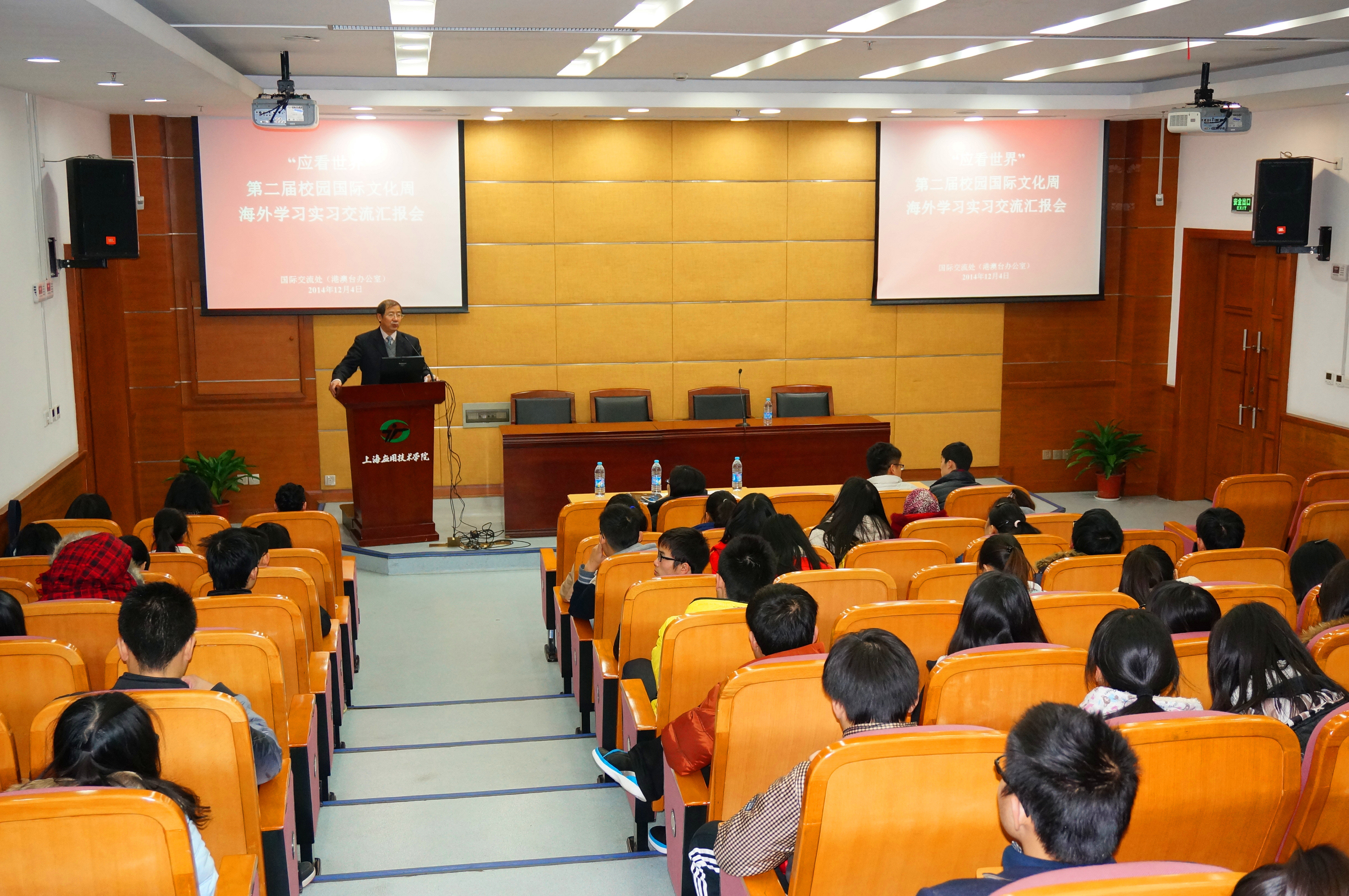 12月4日下午,“应看世界"——第二届校园国际文化周系列活动之学生海外学习实习交流汇报会在我校图书馆召开。校长刘宇陆出席活动并讲话。