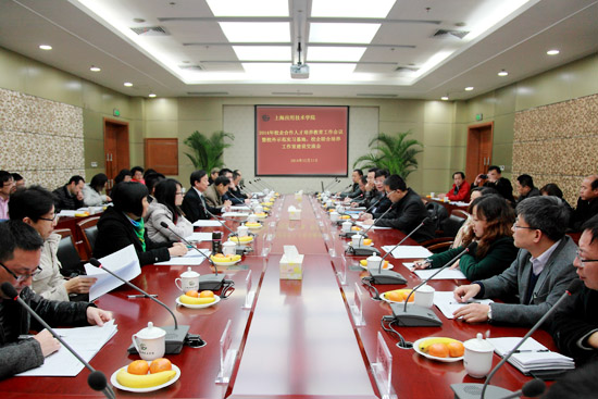 会上,教务处作《上海应用技术学院2014年校企合作人才培养教育工作报告》,对2014年实习教学工作进行回顾,总结了学校在2014年校企合作人才培养教育工作上取得的成绩,特别是学校主动融入现代职业教育体系,积极探索、实践校企合作联合人才培养之路,在示范实习基地建设、校企联合培养工作室建设、校企合作课程建设、学科型社团建设、“三创”平台搭建与校企合作赛事开展、“产学合作,双证融合”推进、“卓越计划”深度实施等方面取得的成果,并从完善产教融合的长效机制、完善“三创”中心运行机制、完善校企合作课程的内涵建设及完善“双证”培训制度等四个方面畅谈了学校在2015年校企合作人才培养工作方面的工作计划和设想。