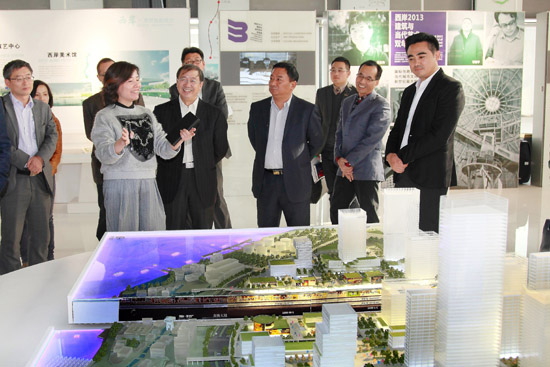 吴松、刘宇陆一行首先来到滨江规划展示馆,在立体规划沙盘前听取了徐汇滨江开发建设规划,了解徐汇滨江B、C、D三个单元产业规划情况。随后,参观了滨水景观大道和龙美术馆、余德耀美术馆,听取了徐汇滨江沿承历史经典,培育文化创意、现代传媒、商务商贸、休闲娱乐、生态宜居等功能产业,积极引进国内外具有核心竞争力和国际影响力的现代传媒机构、加快推进国家级创意产业基地建设的情况介绍。考察过程中,吴松、刘宇陆还与王宏舟等徐汇区陪同人员共同探讨了推进校区合作的有关事宜。