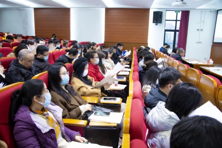 开班仪式上,上海市“四有”好教师(教书育人楷模)提名奖获得者、科学技术研究院院长韩生教授带领全体新进教师郑重宣誓,铮铮誓言掷地有声,彰显了上应教师的永恒初心。材料学院王磊老师代表新进教师表示:要以“拼搏、进取、担当”的态度,努力涵养师德、潜心科研、培养人才,将个人成长积极融入国家战略和及学校发展之中,在高水平应用创新型大学建设的征程上贡献青春之力。华东师范大学王建新教授应邀以《深入学习习近平总书记教育重要论述,做新时代优秀人民教师》为题作辅导报告。他从“深度”“高度”和“角度”三个维度深刻阐述了习近平总书记关于教育重要论述的重大意义,并作生动解读。