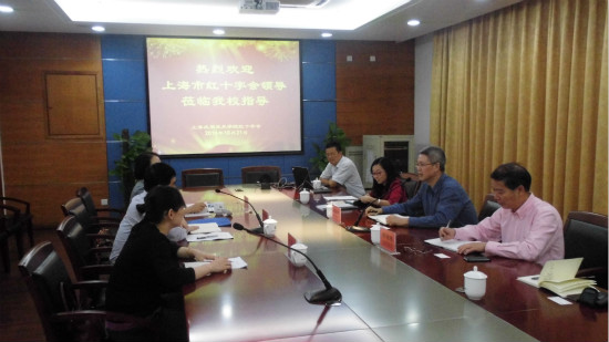 10月21日,上海市红十字会副会长李明磊、红十字会青少年工作部部长周湘兰一行来我校检查并指导红十字会工作。副校长张锁怀代表学校对市红会领导的到来表示热烈欢迎。
