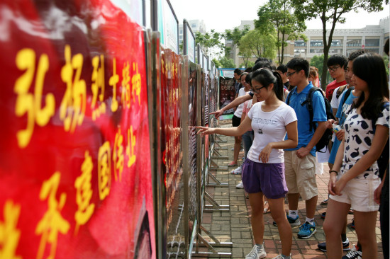 记者看到,不少同学驻足在大型公共区域摆放的英烈典型事迹纪念展板前。正在观看展板的经管学院大三学生马钰钦说,自己本来已经计划在国庆期间外出旅游,当得知学生组织开展这样的活动后,便放弃了自己的出行计划,要在10月1日为先烈们敬献花圈。据介绍,在次日举行的陵园之“行”活动中,学校师生将到奉贤烈士陵园进行缅怀纪念活动,敬献花圈,参观革命烈士史料陈列室,并打扫园陵,清除陵园里的垃圾和杂物。马钰钦同学说,要为英烈们安眠的这片陵园做好保洁工作。
