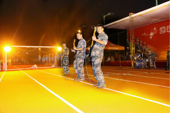 特警团教官们与学生共同组成的乐队表演也是晚会的一大亮点,参加表演的三位教官曾登上中央电视台CCTV-7《军营大舞台》栏目表演并获奖,他们在晚会现场激情演绎歌曲《光辉岁月》和原创改编曲目《时刻准备着》,唱出了军人的热血情怀和潇洒坚毅,全场掌声雷动。最终,经管学院表演队摘得优秀表演一等奖,工创学院、材料学院获得优秀表演二等奖,生态学院、轨交学院、外国语学院获得优秀表演三等奖。