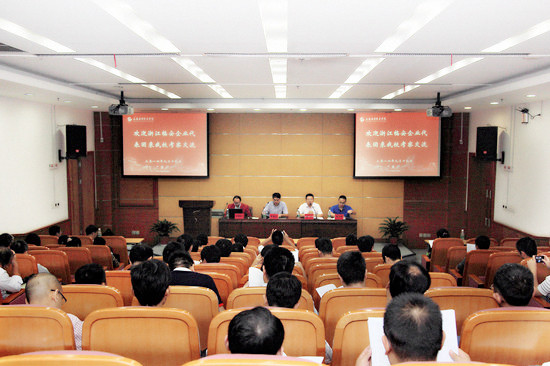 9月19日,临安市科技局副局长董海军率临安市35家企业负责人来访我校,双方于图书馆B102室举行产学研项目对接大会。我校科技处负责人及学校40多名教师参加对接大会。