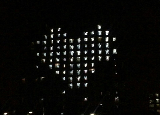 11月13日晚8点40分,11号楼为全校师生展示了一场绚丽的灯光秀。安静的夜间校园里,一颗闪亮的爱心呈现于夜幕之中。灯光亮起的时间虽然不长,却吸引了大量围观的同学。随着爱心灯光洒满校园,募捐活动也拉开了帷幕。