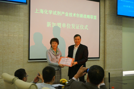 10月29日下午,“上海化学试剂产业技术创新战略联盟”2013年第三次工作会议在上海市计量测试技术研究院召开,我校作为新加盟单位受邀参会。副校长刘宇陆作为我校与上海星可高纯溶剂有限公司共建的“高纯溶剂工程技术中心”理事长高度重视,安排中心常务副主任任玉杰教授代表学校参加会议。