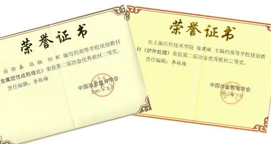 其中,由徐春教授主编的《金属塑性成形理论》荣获二等奖,陈建斌副教授主编的《炉外处理》荣获三等奖,另有两位老师参编的教材分获二、三等奖。