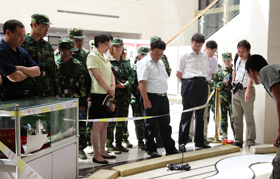 为进一步展示我校学生的创新精神和实践能力,通过举办学科竞赛和创新创业活动,引导新生在入学之初就播种梦想、耕耘希望,9月4日-5日, 由教务处主办,学生处、团委和各二级学院协办的“第三届学科技能竞赛与创新创业展示会”在图书馆举行。展会第一天,校领导吴松、卢冠忠、刘宇陆、陈东辉、叶银忠、张锁怀、张艳萍与新生一起参观了成果展,并与新生进行了交流。