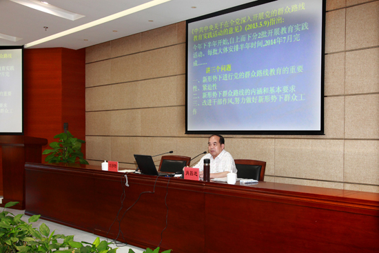 肖昌进以《抓好党的群众路线教育与实践,加强和改进干部作风建设》为题,引经据典,从党的历史经验和社会科学主义运动史的角度,通过友人提醒、苏共兴亡、干部队伍现状三个方面阐述了新形势下进行党的群众路线教育的重要性和紧迫性。他从马克思主义群众观入手,阐释了新形势下党的群众路线的基本内涵和要求,回顾了我党的群众路线的起源、历史和基本内容,回顾了党的百年党风建设的基本要求,指出新形势下党的工作作风的新要求。