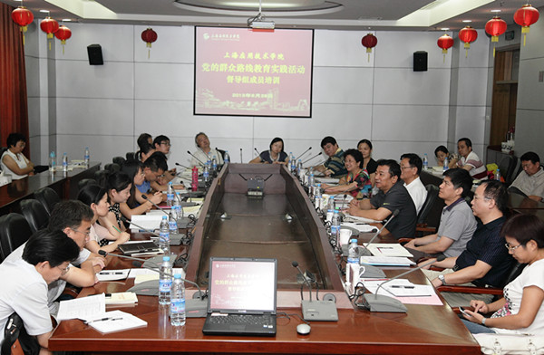 为认真贯彻中央和市委要求,切实提高教育实践活动督导工作有效性,确保各项工作部署落实到位,8月28日,上海市教卫工作党委第六督导组组长童西荣等5名督导组成员专程来我校指导工作,并为我校督导组进行专题培训。学校教育实践活动领导小组组长、党委书记吴松出席会议并讲话,教育实践活动副组长、党委副书记宋敏娟主持会议。学校督导组成员参加培训。