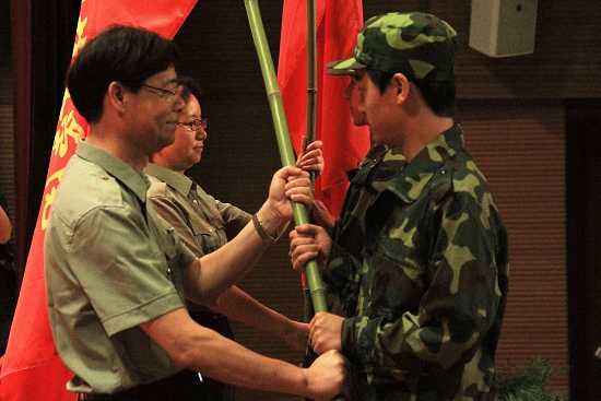 大会在雄壮的国歌声中开始。在热烈的气氛中,叶银忠、张艳萍向各连授旗。新生代表和辅导员代表先后在大会上发言。