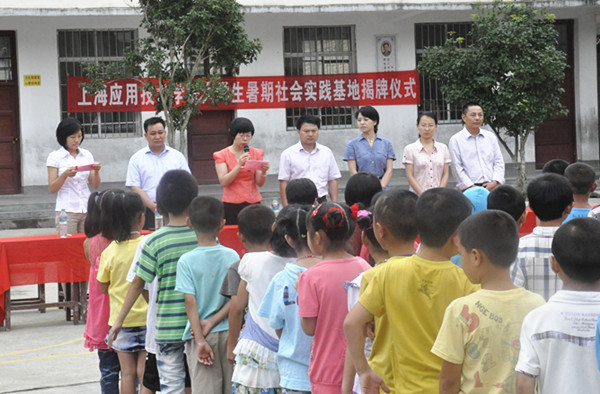 7月16日上午,我校2013年大学生暑期社会实践基地揭牌仪式暨大学生暑期“三下乡”赴江西宁都支教实践活动启用仪式在江西省宁都县大沽乡小学举行。江西省宁都县委常委、宣传部长廖东根、宁都县副县长张爱荣及我校团委书记韩磊等出席揭牌仪式。