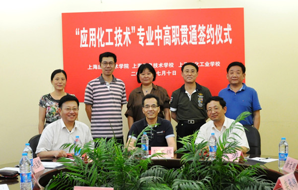 7月10日,上海应用技术学院、上海信息技术学校、上海石化工业学校“应用化工技术”专业中高职贯通签约仪式在我校徐汇校区举行。副校长陈东辉、上海信息技术学校校长邬宪伟、上海石化工业学校校长苏勇出席仪式并分别代表各自学校签约。我校高职学院党政班子及教师代表参加会议。