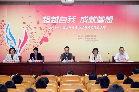 5月24日,由上海市教委主办,我校和用友新道科技有限公司共同承办的2013年上海大学生企业经营模拟沙盘大赛在奉贤校区举行。本次大赛吸引了上海财经大学、华东理工大学、东华大学、上海大学等32所高校近200名师生参赛。副校长陈东辉参加开幕式,上海市教委、用友新道科技有限公司上海分公司、校教务处、经济与管理学院等相关部门负责人出席。