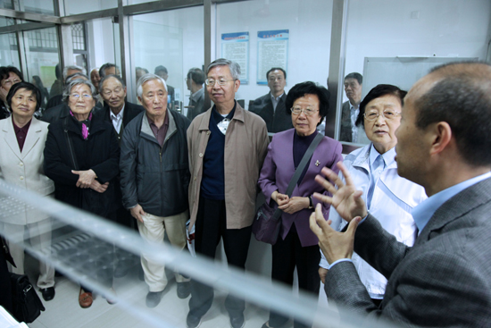 卢冠忠向前来考察的兄弟高校老领导介绍了学校建设发展情况,感谢各位老领导前来学校指导工作并对我校发展提出的很好的意见和建议。