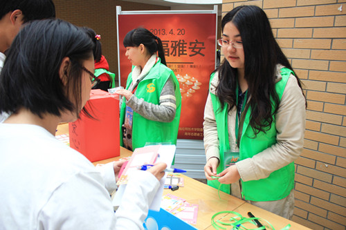 2013年4月20日四川雅安发生的7.0级大地震震惊全国,也牵动着应技学子们的心。4月23日,上海应用技术学院青年志愿者工作部在全校范围内开展了“情系雅安,共援四川”志愿活动,希望用实际行动为雅安加油,祈福平安。