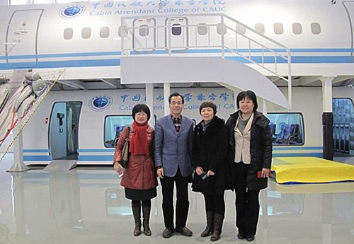 赴津期间,陈东辉一行前往奥凯航空有限公司机务工程部会见了奥凯航空有限公司维修副总裁张为民,了解到航空业对于机务维修人才的培养模式和企业的用人标准,并到中国民航大学空乘学院进行了参观交流,参观了该学院模拟仓、实训教室、形体训练教室等,感受了航空学生半军事化教育管理的模式。