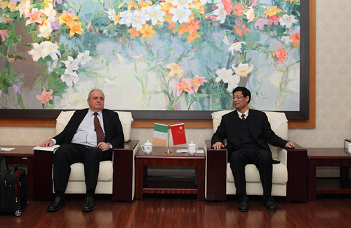 3月20日, 爱尔兰塔拉理工学院教务长John Vickery 先生、发展部主任Pat Coman先生应邀第四次来访我校,就两校之间的深度合作进行交流。副校长叶银忠会见客人,电子电气工程学院、国际交流处参加接待。