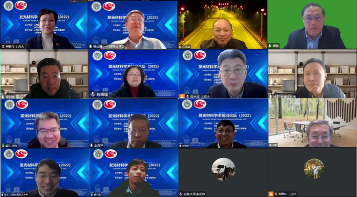 中国科学院院士、南昌大学副校长江风益教授,澳大利亚科学院院士、中国工程院外籍院士、上海理工大学光子芯片研究院院长顾敏教授以及来自南昌大学、上海理工大学、中科院苏州纳米所、兰州大学、南京理工大学、华南师范大学、中科院长春应化所、吉林大学、华中科技大学及有研稀土新材料股份有限公司等专家学者就发光材料设计、物理机制及应用的最新进展和挑战展开了交流与讨论。论坛共有主旨报告11场,通过腾讯会议、材视直播等平台同步直播。