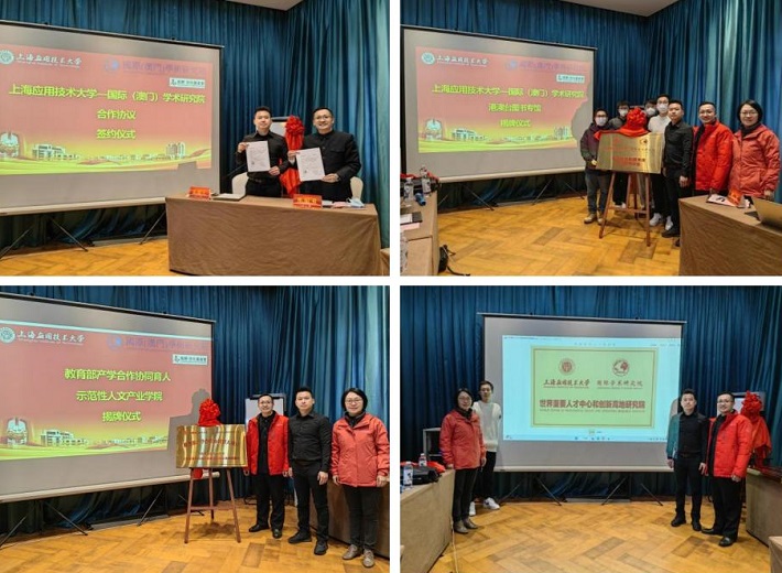 会上,双方举行合作协议签约仪式、港澳台图书专馆揭牌仪式、教育部产学合作协同育人项目示范性人文产业学院揭牌仪式、共建世界重要人才中心和创新高地研究院揭牌仪式、共建世界重要人才中心和创新高地研究院(澳门)院长及客座教授聘任仪式等多项活动。国际(澳门)学术研究院高胜•文化基金会还向我校捐赠10万澳门元,用作支持师生科研、少数民族、贫困生及境外生奖学金等,以助力国家教育事业发展,以实际行动践行爱国爱澳。同时举行图书捐赠仪式,张向前代表学校接受捐赠,并表示双方共建港澳台图书专馆,已成为上应大全开放自助图书馆明星分馆、特色分馆,为双方澳门学研究奠定基础。