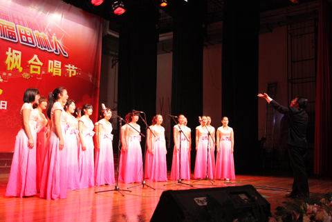 十八大描绘出人民福祉和美丽中国,让社区充满着喜庆,居民洋溢着幸福。12月14日下午,“喜庆十八大•幸福田林人”田林社区首届红枫合唱节开幕式在徐汇影剧院举行,我校欢悦女声合唱社作为唯一入选的学校演出团队,与上海民族乐团、上海轻音乐团、城市合唱团等专业艺术团体同台演出,代表全校大学生参与社区共建,同庆党的十八大。