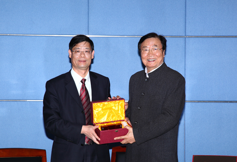 会谈后,双方互赠礼品并签署了校际合作协议。