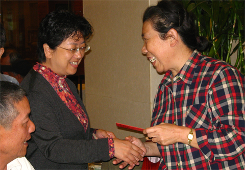 宋敏娟代表学校党政领导向老同志致以节日问候,感谢老同志在学校建设与发展中付出的辛勤劳动,并就学校近期工作,特别是加强内涵建设,努力推进申请更名工作进行了介绍。她衷心祝福老同志健康长寿,生活幸福,为他们送上了寿礼。
