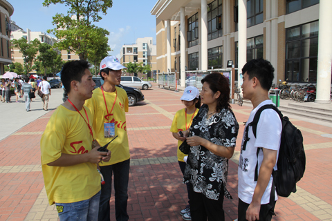 在新生报道现场,还活跃着一支支志愿者服务队,他(她)们用笑脸、热情、真诚温暖着整个校园。帮新生搬行李,给新生引路,协助新生办理手续,到处都是志愿者的身影。
