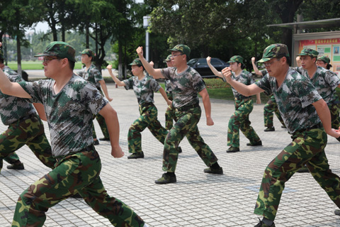 在军训汇报会上,青干班学员顶着炎炎烈日,英姿飒爽、步伐整齐地进行了行进、立定、敬礼等队列项目的会操演练,随后的捕俘拳方阵的精彩拳术表演尽显军人气势,赢得热烈掌声。在一周的军事训练中,全体参训学员在军训教官和班主任的带领之下,顶着烈日、冒着风雨,严守纪律、刻苦训练,充分展示了认真吃苦自律的态度和勇于克服困难的精神。