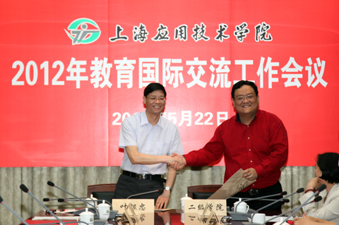 叶银忠代表学校与各二级学院签署了“2012年教育国际交流工作目标任务书”。