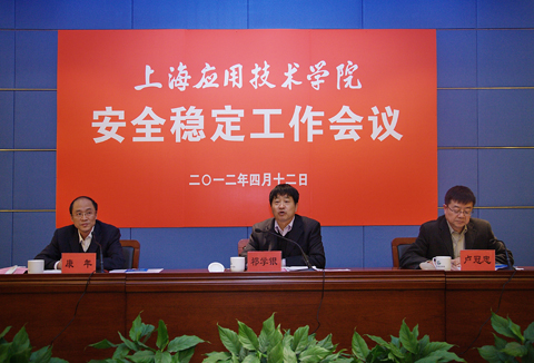 会上播放了上海市教育系统2011年《安全责任,重于泰山》安全教育警示片。学生工作部(处)、香料香精技术与工程学院、后勤保障处、基建处在会上作了交流发言,在回顾总结2011年安全稳定工作情况后,就深入贯彻落实学校安全稳定工作会议精神提出了进一步的工作思路与目标。