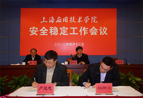 4月12日,学校召开安全稳定工作会议。校党委书记祁学银出席会议并讲话。校长卢冠忠出席会议并与校属部门代表签订安全工作责任书。会议由校党委副书记、副校长康年主持。