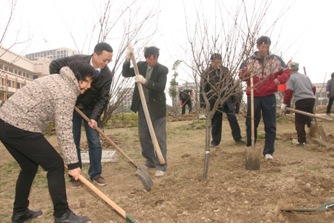 在朦朦细雨中,各党派成员在主委的带领下怀着愉悦的心情,手持铁锹,种下由民主党派出资购买的50株梅花树,倾心打造“同心园”。一朵朵梅花树苗的茁壮成长,不仅美化了校园,也象征着我校民主党派始终与共产党同心同德,同心同向,同心同行,共同见证和参与学校的发展。