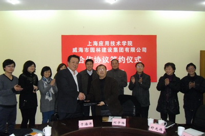2月23日,我校与山东省威海市园林建设集团有限公司共同组建科技型园林景观设计公司在徐汇校区举行了签约仪式。副校长刘宇陆代表学校与威海市园林建设集团有限公司副总裁于海洋签订合作协议。资产经营公司、生态学院、威海市园林建设集团有限公司相关人员出席了签约仪式。