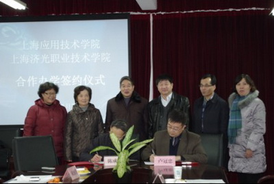 1月7日,学校与上海济光职业技术学院举行校际合作签约仪式。校党委书记祁学银、校长卢冠忠、副校长陈东辉以及上海济光职业技术学院院长陈成澍、党委书记潘洪祺、副院长谢陪俐、院长助理陈幼德出席了签约仪式。