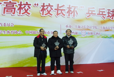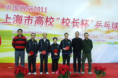 12月24日,由上海市教委主办的2011年上海市高校“校长杯”乒乓球比赛在上海大学生体育中心举行。我校代表队经过整整一天激烈比赛,在28支参赛队伍中脱颖而出,取得了第三名的好成绩,实现了历史性突破,为学校赢得了荣誉。