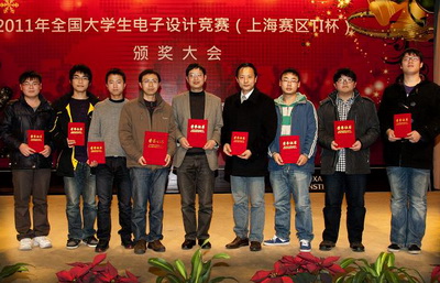 12月23日下午,2011年全国大学生电子设计竞赛上海赛区颁奖大会在复旦大学举行。我校由电气学院、机械学院和工程创新学院组成的代表队共获一等奖1项、二等奖3项、三等奖3项,汲伟民、龚德利、吴洪3位老师获优秀指导教师称号,学校获上海赛区颁发优秀组织奖。(教务处)