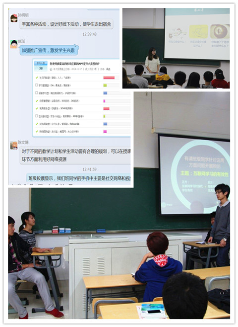 针对“互联网时代学生如何有效学习”这一主题,各班开展了丰富多彩的活动,如易班线上投票、班会讨论、主题小辩论、互联网学习经验分享等。全体辅导员针对“互联网时代如何指导学生有效学习”开展线上“网络头脑风暴”,各位老师充分结合所带班级的专业特色和实际情况,提出要从统筹网络资源、创新学习场景、网络朋辈指导三方面入手开展个性化的学习指导工作,尤其是要进一步挖掘和发挥易班网络的作用。