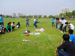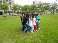 同学们分成两组进行一系列的游戏。大家从中不仅收获了快乐,而且还收获了许多人生的感悟——鸡蛋进化游戏使同学们懂得了人生起起伏伏是正常的,不管怎样我们都应该勇敢地往前走;背靠背站立游戏让大家切身体验到,很多时候我们需要依靠团队的协作才能达到目的,仅仅依靠个人的能力是行不通的。