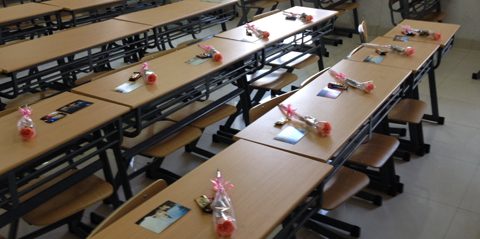3月7日的早晨,三八妇女节即将来临之际,学校教学楼像往常一样人流如织,然而女生们不时收到的阵阵惊喜,却让这个早晨显得不同寻常:走道上,几位高大帅气的“都教授”为途经女生送上的糖果;教室里,女生的课桌上精心摆放着的鲜花和贺卡……这一切都属于材料学院学生会精心策划的“第二届女生节”系列活动。