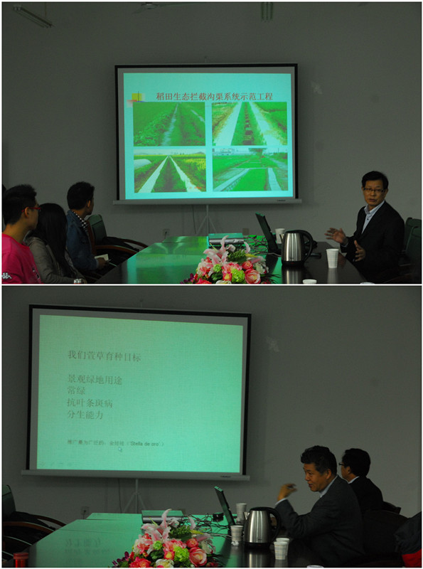 张志国教授就萱草育种在国内外的发展趋势进行了介绍,并给大家展示了课题组最新培育的萱草品种,指出了萱草育种的新方向。会后,我校生态技术与工程学院特别组织了生态学相关的骨干教师与杨林章研究员进行了座谈,为双方今后的学术交流与项目合作打下了良好的基础。与此同时,杨林章研究员还为我校生态学学科发展提出了宝贵的意见和建议。